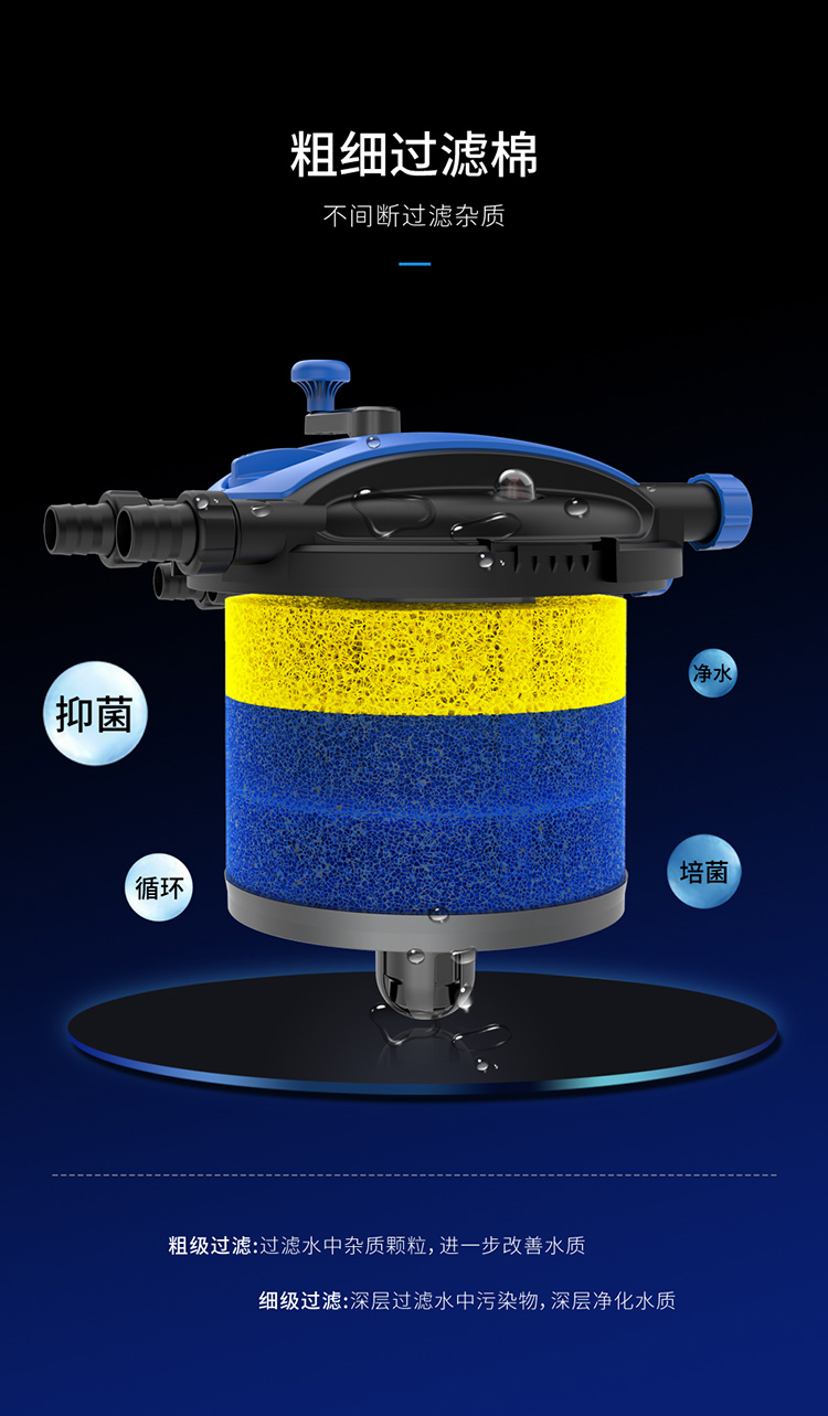 • 內(nèi)置多種生化過濾材料,有效降解水中的硝酸鹽、磷酸鹽,分解水中多余養(yǎng)分,保證水體清澈。